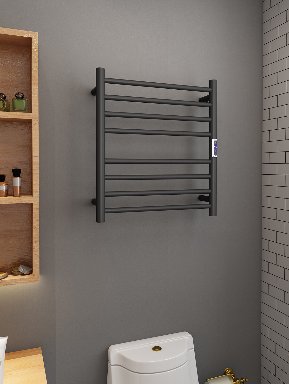 8桿時(shí)控開關(guān)電熱毛巾架 8 bar time switch heated towel rail 材質(zhì)Material:SS201/SS304 功率Power:220V/130W 表面Surface:Black Painted 黑色噴塑 尺寸Size:550*110*650mm 包裝Ctn size:570*60*680mm