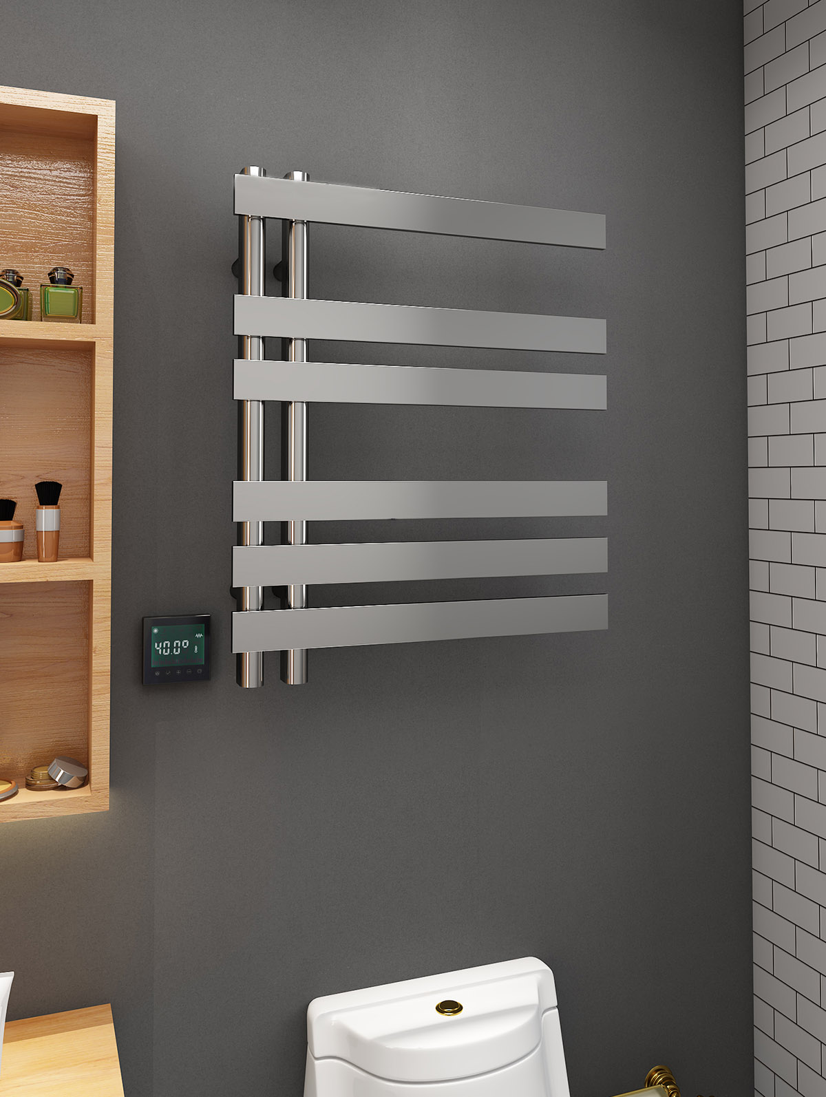 6桿電熱毛巾架 6 bar heated towel rail 材質(zhì)Material:SS201/SS304 功率Power:220V/140W 表面Surface:Mirror Polished 鏡面拋光 尺寸Size:550*100*650mm 包裝Ctn size:570*130*680mm